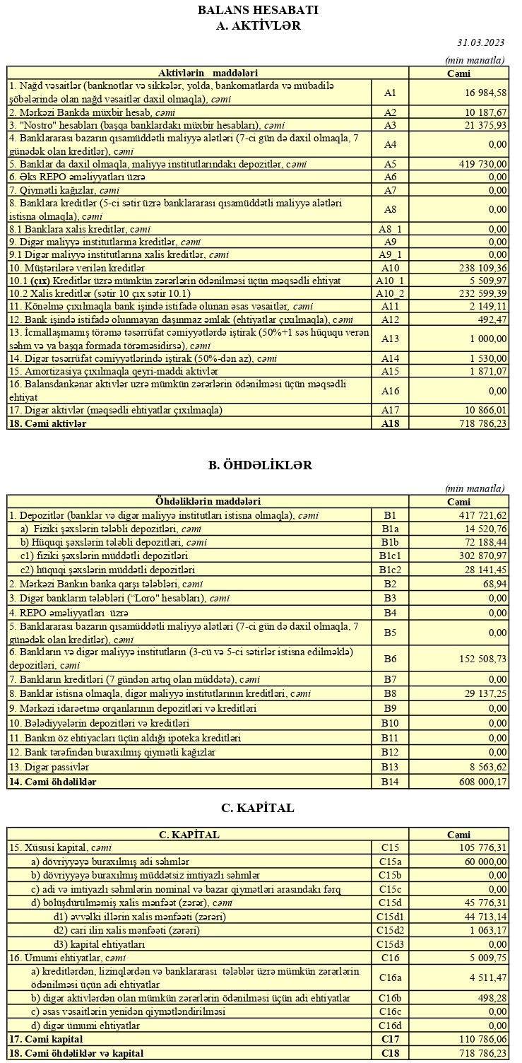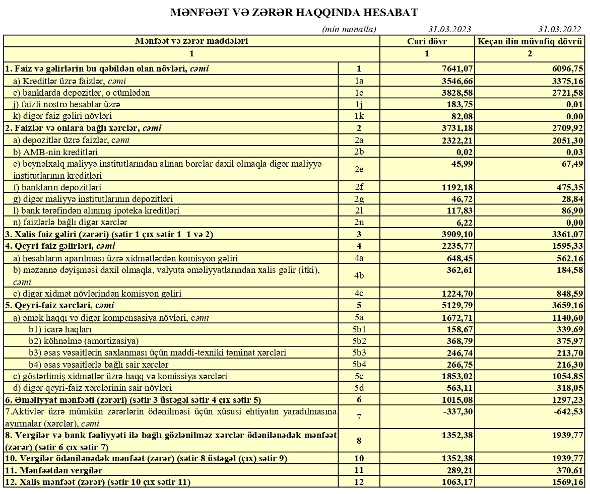 ASB 2022-ci ilin 1-ci rübünü 1 milyon 569 min manat xlias mənfəət ilə bağlamışdı.