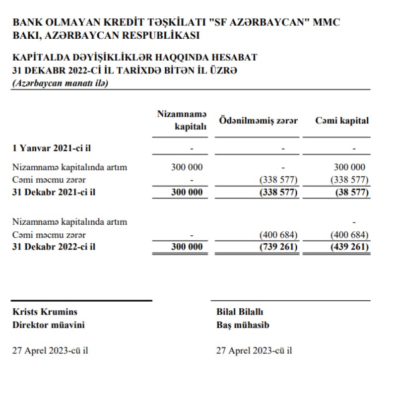 "SF Azərbaycan" BOKT MMC-nin 2022-ci il üzrə maliyyə hesabatları
