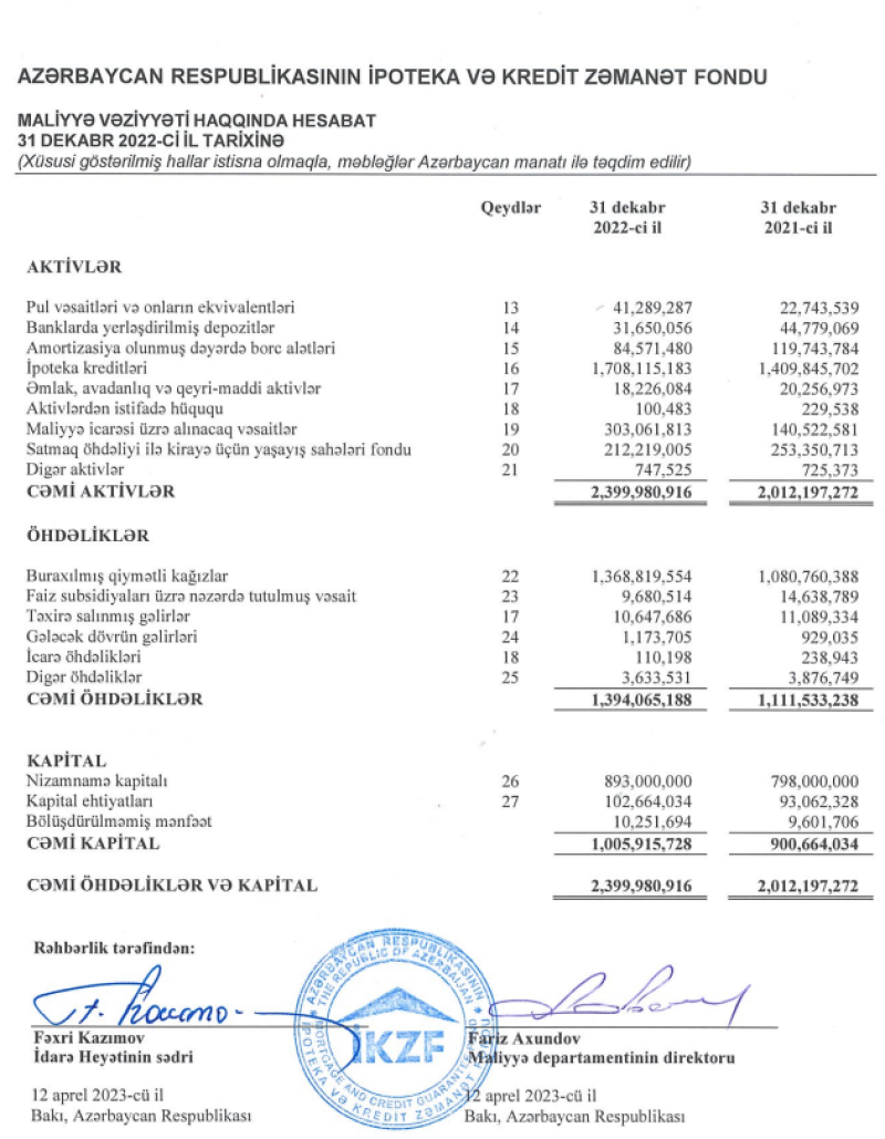 Marja.az xəbər verir ki, 2021-ci ildə İpoteka və Kredit Zəmanət Fondunun 56 milyon 252 min manat ikən, 2022-ci ildə 65 milyon 992 min manata yüksəlib. Haqq və komissiya gəlirləri isə 1 milyon 450 min manatdan 1 milyon 483 min manata qalxıb.