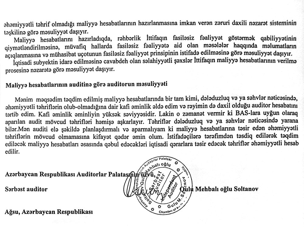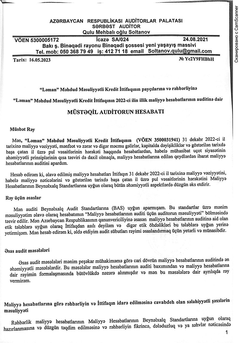 "Ləman" MM Kredit İttifaqı 2022-ci il üzrə maliyyə göstəricilərini açıqladı