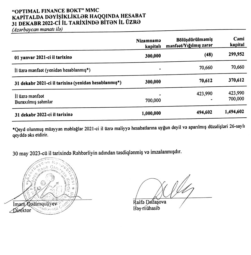 “Optimal Finance BOKT” MMC 2022-ci il üzrə maliyyə hesabatı ilə ətraflı buradan tanış ola bilərsiniz.