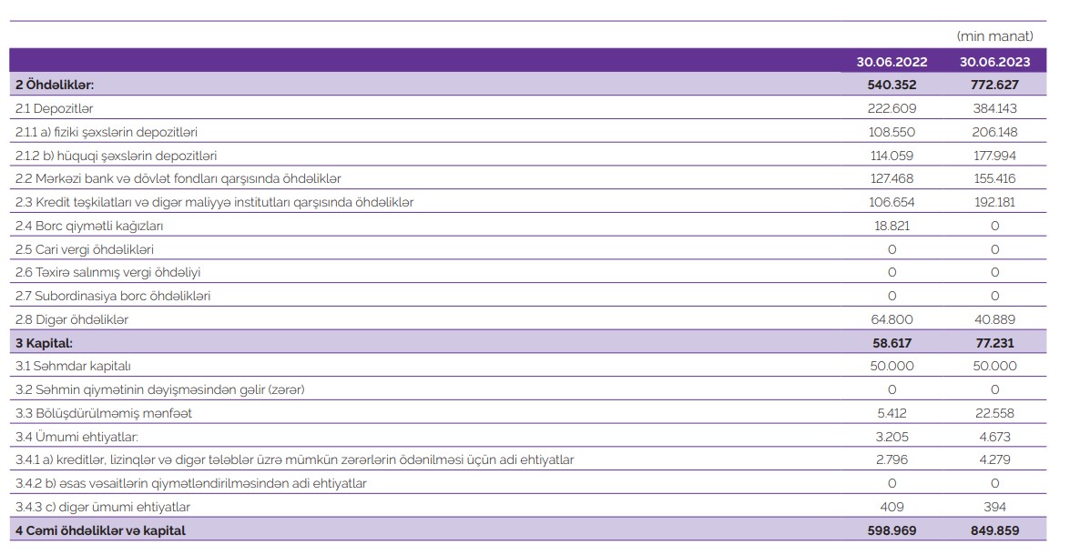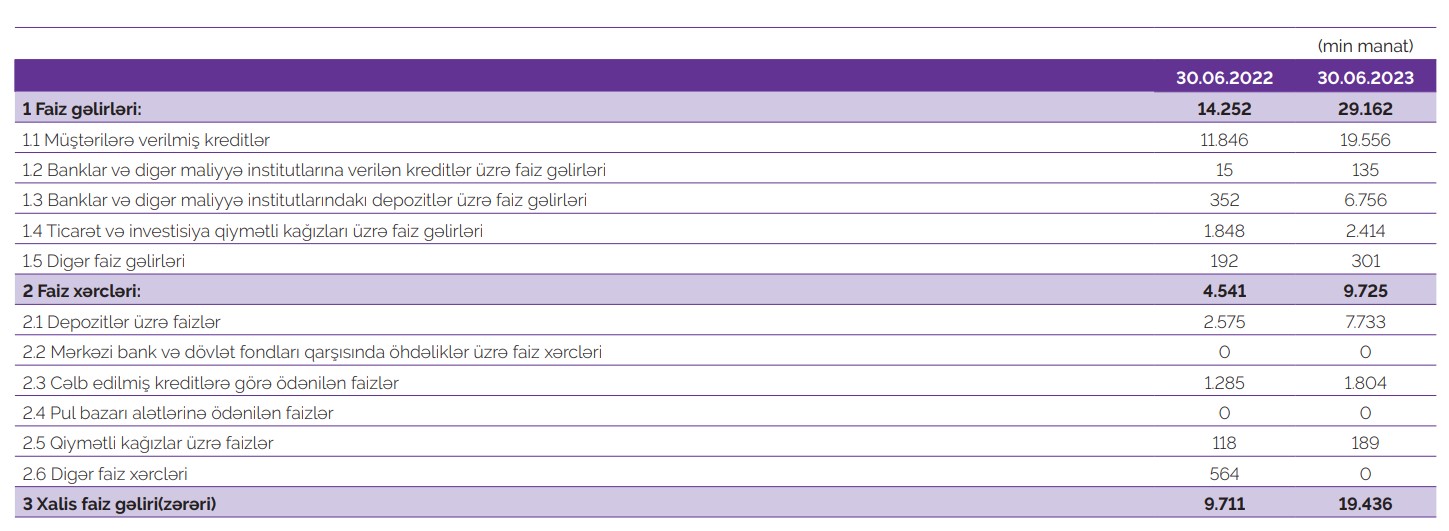 Müqayisə üçün qeyd edək ki, 2022-ci ilin ilk 6 ayında "Azər Türk Bank"ın cəmi əməliyyat gəlirləri 23 milyon 219 min manat, cəmi əməliyyat xərcləri 22 milyon 231 min manat, əməliyyat mənfəəti 988 min manat, ehtiyatlara ayırma 177 min manat təşkil etmişdi.