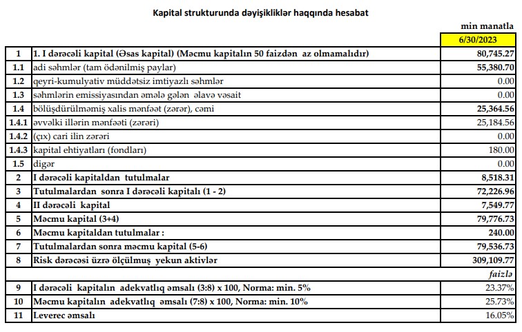 30 İyun 2023-cü il tarixində "Yapı Kredi Bank Azərbaycan" 79 milyon 537 min manat məcmu kapitala malik olub.
