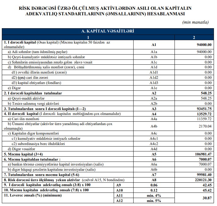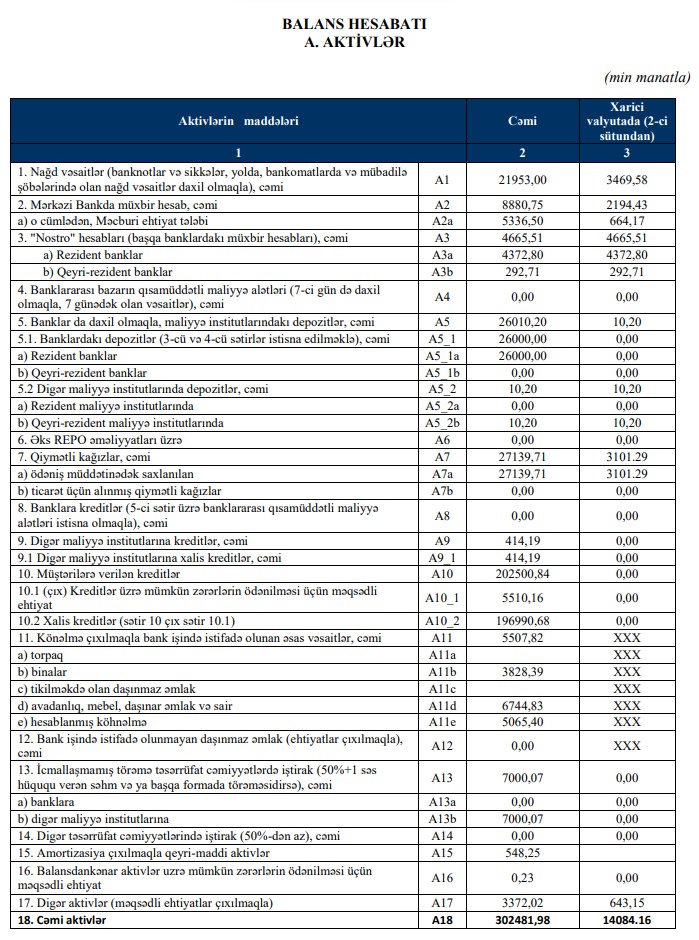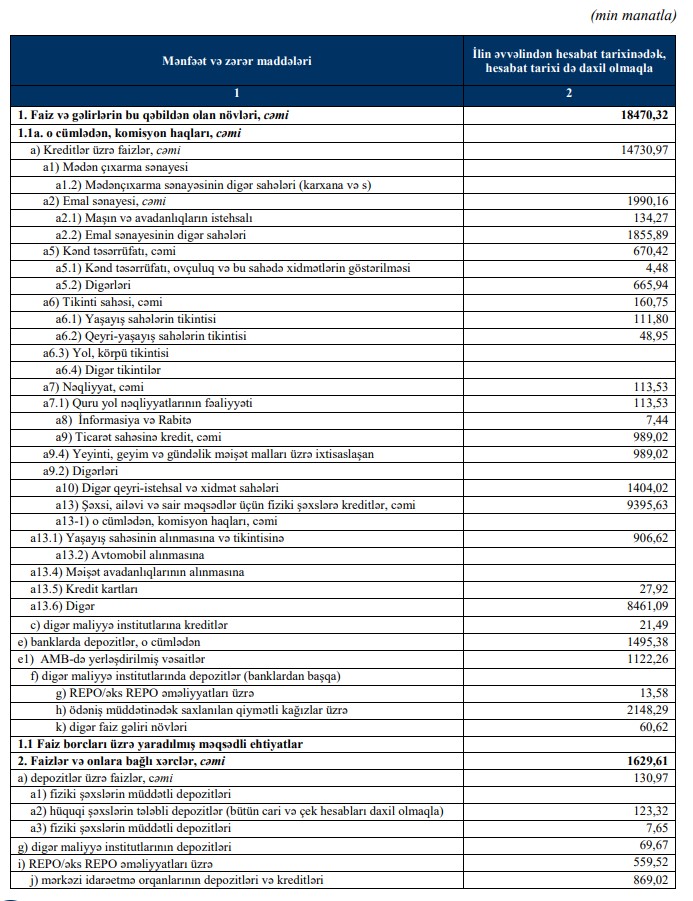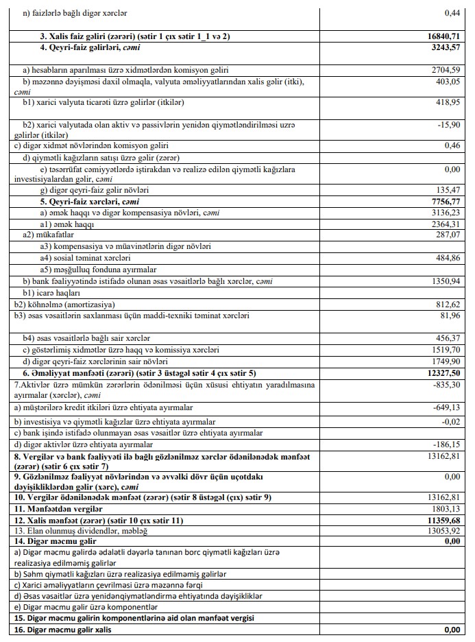 Bank ötən ilin eyni dövrünü 12 milyon 441 min manat xalis mənfəət ilə bağlamışdı.