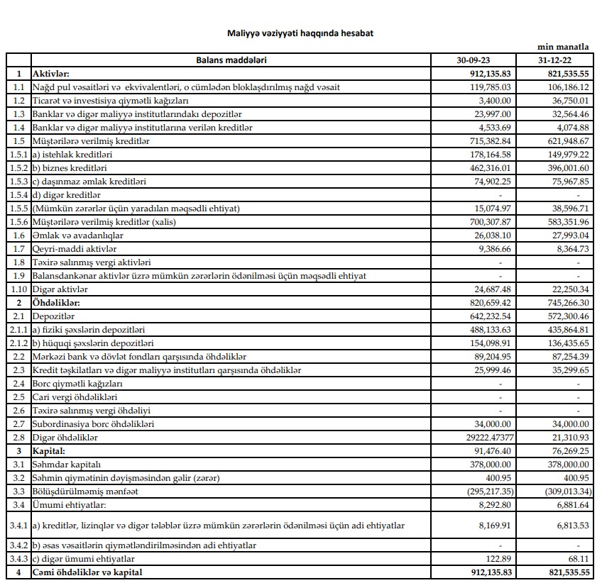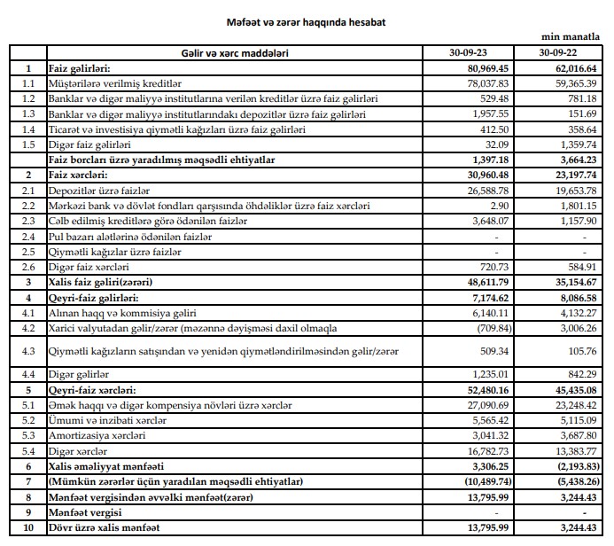 "Yelo Bank" ASC 2023-cü ilin 9 ayını (yanvar-sentyabr) 13 milyon 796 min manat xalis mənfəət ilə başa vurub.