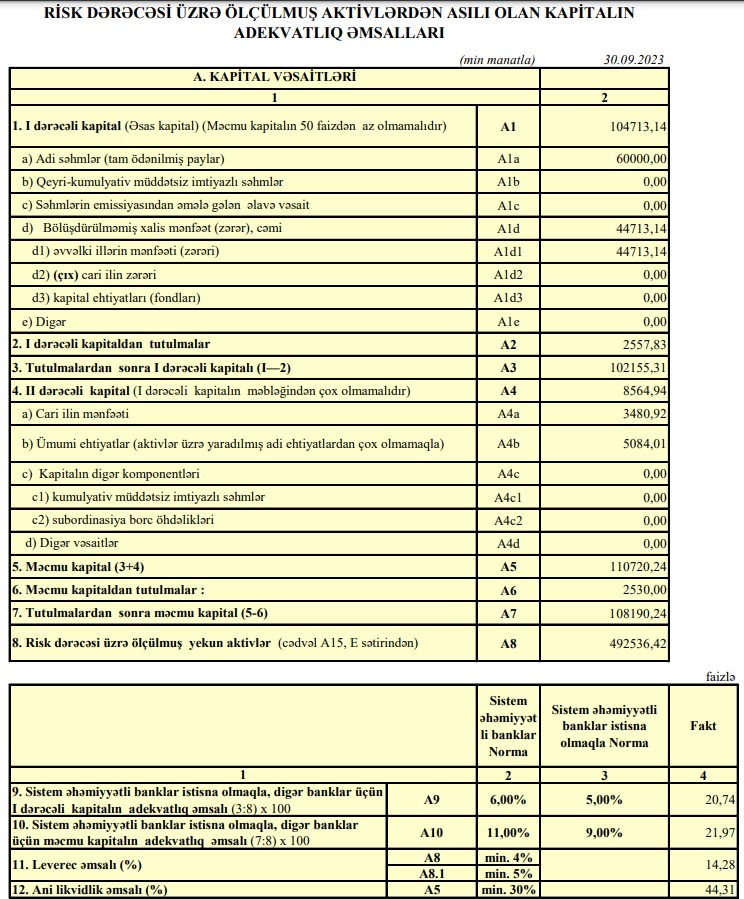 30 sentyabr 2023-cü il tarixində "Azərbaycan Sənaye Bankı" ASC 108 milyon 190 min manat məcmu kapitala malik olub.