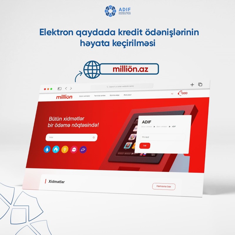 Elektron qaydada kredit ödənişlərinin həyata keçirilməsi - million.az veb saytı vasitəsilə;