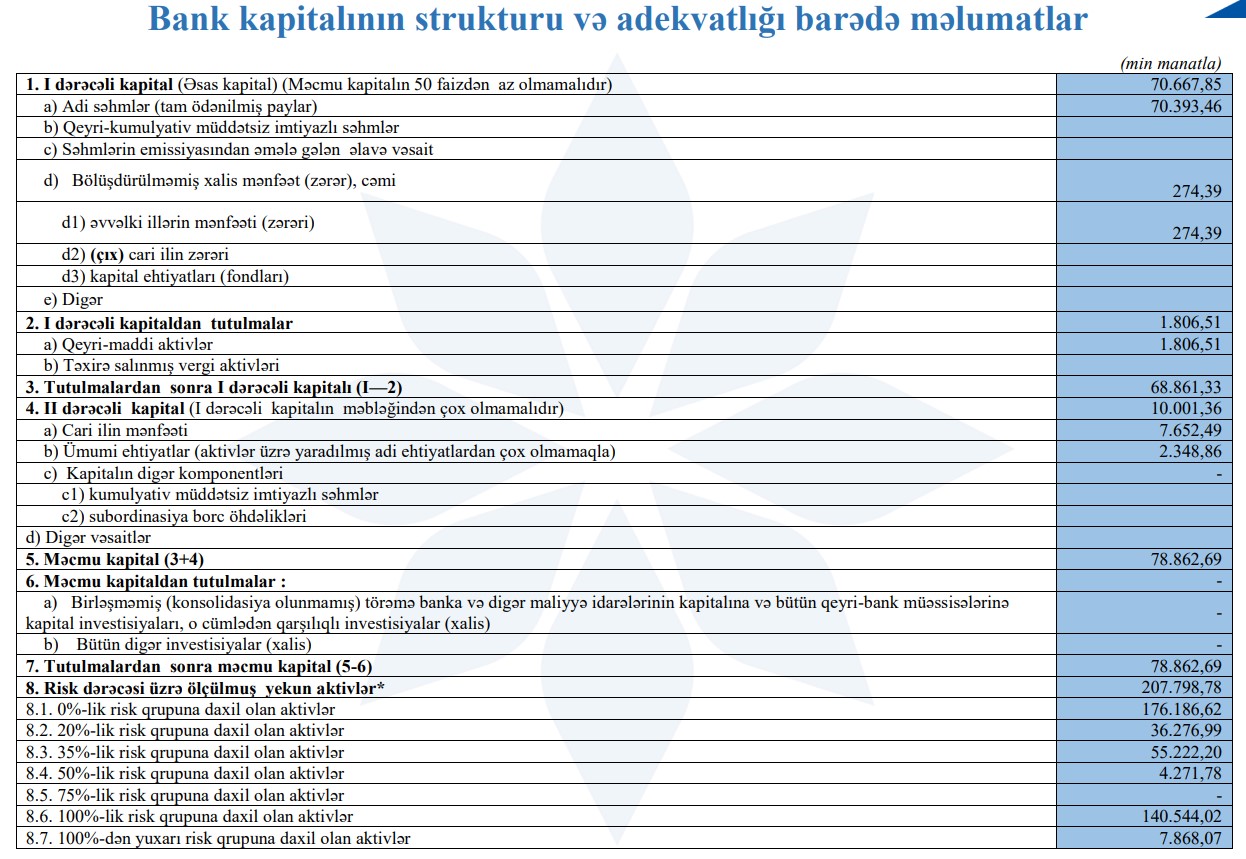31 dekabr 2023-cü il tarixində "AFB Bank" ASC 78 milyon 863 min manat məcmu kapitala malik olub. Bank 2022-ci ilin sonunda 82 milyon 459 min manat məcmu kapitala malik idi.