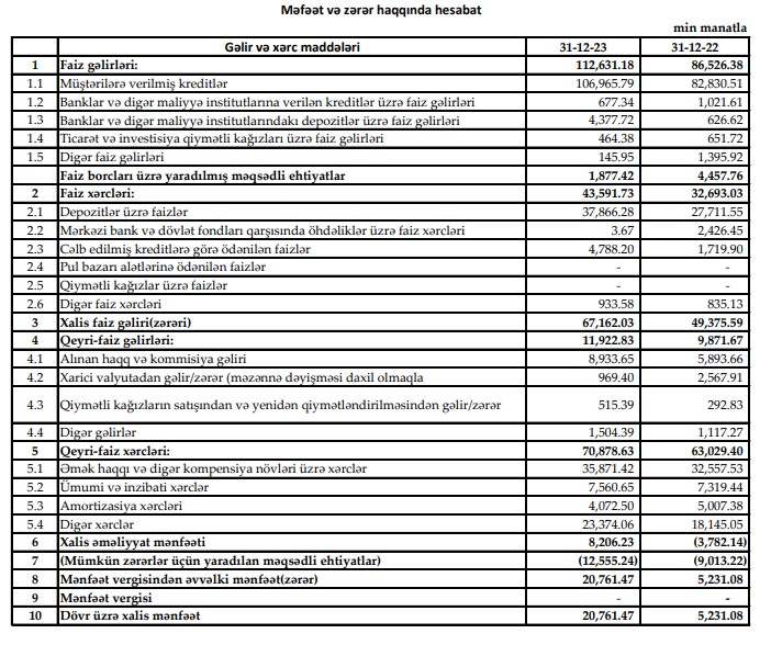 Bu bankın xalis mənfəəti ötən il 4 dəfə artıb