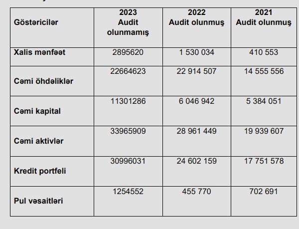Marja.az xəbər verir ki, ötən il BOKT “İnternational” ASC-nin kredit portfeli (müştərilərə verilmiş kreditlər) 6 milyon 394 min manat və ya 26% artaraq 31 dekabr 2023-cü il tarixində 30 milyon 996 min manata çatıb.