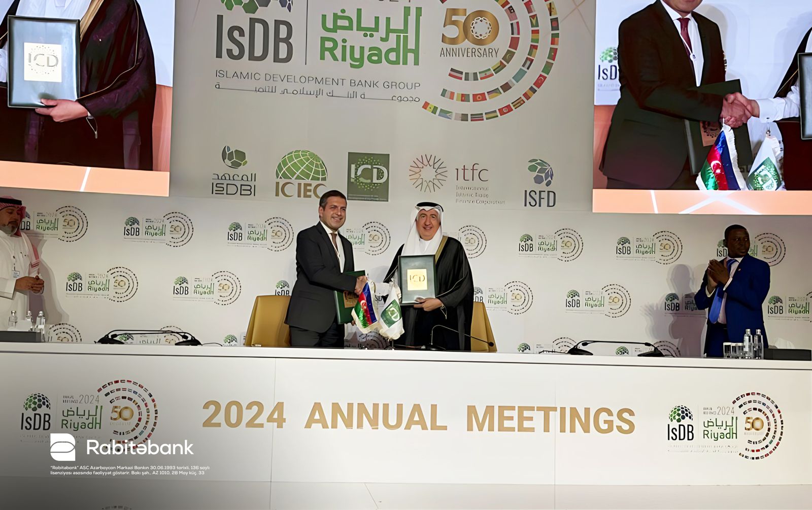 Müqaviləni Rabitəbankın İdarə Heyətinin sədri Aydın Hüseynov və Ticarətin Maliyyələşdirilməsi üzrə Beynəlxalq İslam Korporasiyasının (ITFC) Baş icraçı direktoru, eləcə də Özəl Sektorun İnkişafı üzrə İslam Korporasiyasının (ICD - İslam İnkişaf Bankı qrupuna (IsDB) daxildir) baş direktoru vəzifəsini icra edən Hani Salem Sonbol imzalayıblar.