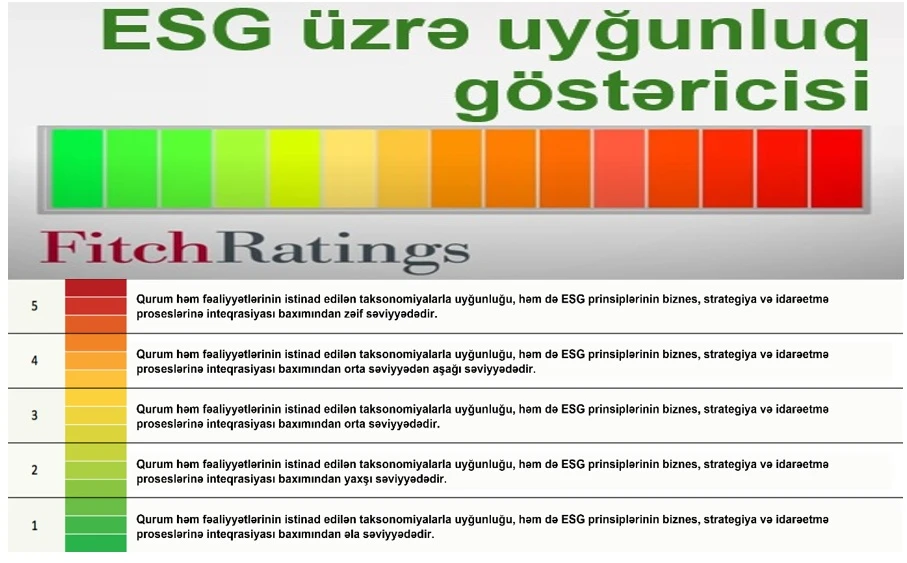 Qeyd edək ki, “Sustainable Fitch Ratings” qlobal səviyyədə bütün aktiv bazarlara Ekoloji, Sosial və İdarəetmə (ESG) göstəricilərinin qiymətləndirilməsi üçün həll təqdim edir və beynəlxalq maliyyə bazarlarında daha dəqiq və məlumatlı qərarlar qəbul edilməsində kömək edir.