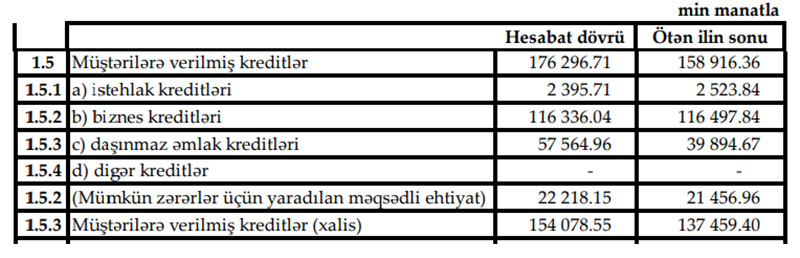 2020-ci ilin 1-ci yarısında “Günay Bank”ın istehlak kreditləri portfeli 128 min manat, biznes kreditləri portfeli isə 161 min manat azalıb.