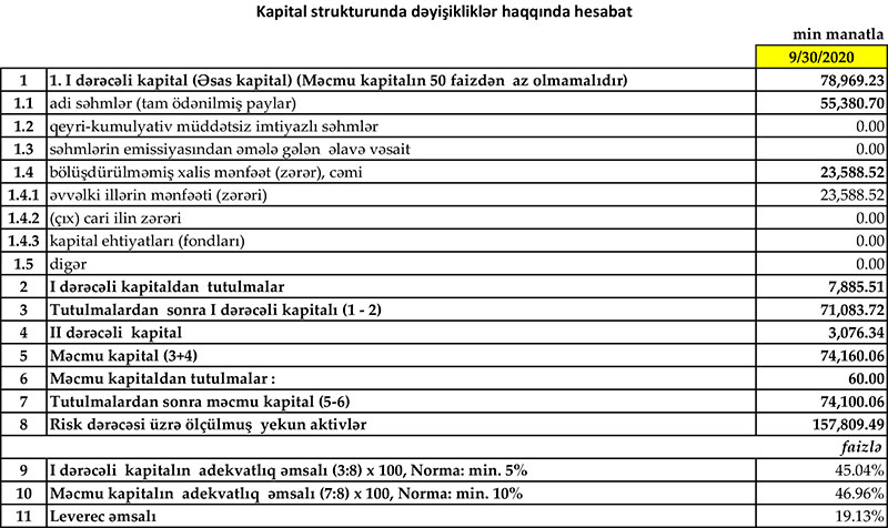 Hesabat dövründə “Yapı Kredi Bank Azərbaycan”ın öhdəlikləri 19,2% azalaraq 268 milyon 919 min manata, o cümlədən depozit portfeli 17,1% azalaraq 248 milyon 892 min manata düşüb, balans kapitalı isə 1,6% artaraq 82 milyon 46 min manata çatıb.