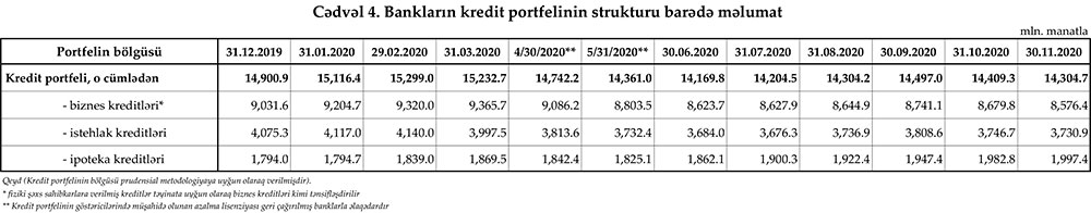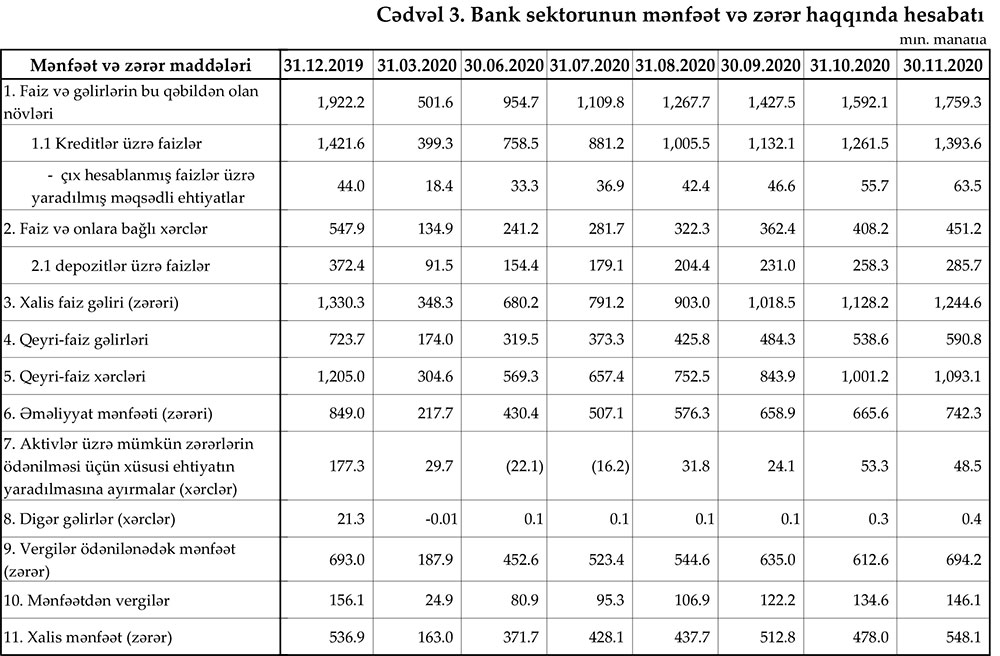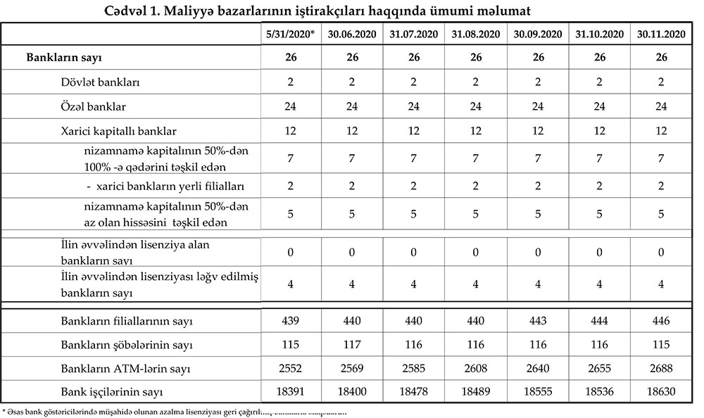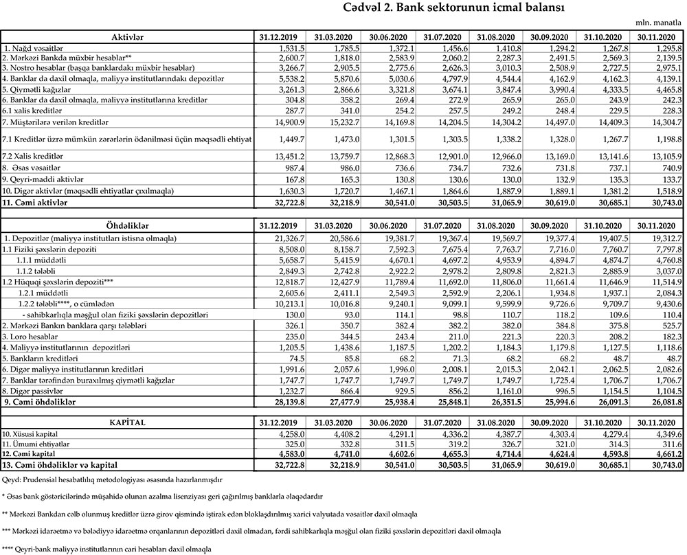 30 noyabr 2020-ci il tarixinə olan bank sektorunun əsas göstəriciləri.
