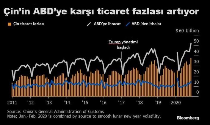 ABŞ Prezidenti Donald Trampın vəzifə müddətinin başa çatmasına çox az bir müddət qalıb. O, başlatdığı ticarət müharibəsində uduzub. Çinin ABŞ-a olan ticarət artıqlığı Trampın rəhbərliyi dövrü ərzində artımaqda davam edib (ABŞ-ın Çindən idxalı Çinə ixracını üstələyir) .