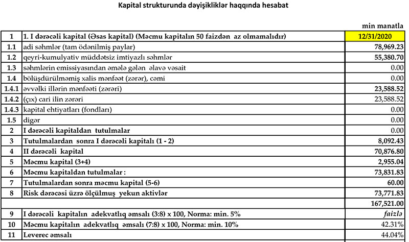 “Yapı Kredi Bank Azərbaycan” 2020-ci ili 1 milyon 373 min manat xalis mənfəət ilə başa vurub. Bank 2019-cu ili 3 milyon 977 min manat xalis mənfəətlə bağlamışdı. Xalis mənfəətin azalmasının əsas səbəbi “Yapı Kredi Bank Azərbaycan”ın mümkün zərərlər üçün yaradılan ehtiyatlara ayırmanı artırması ilə əlaqədardır.