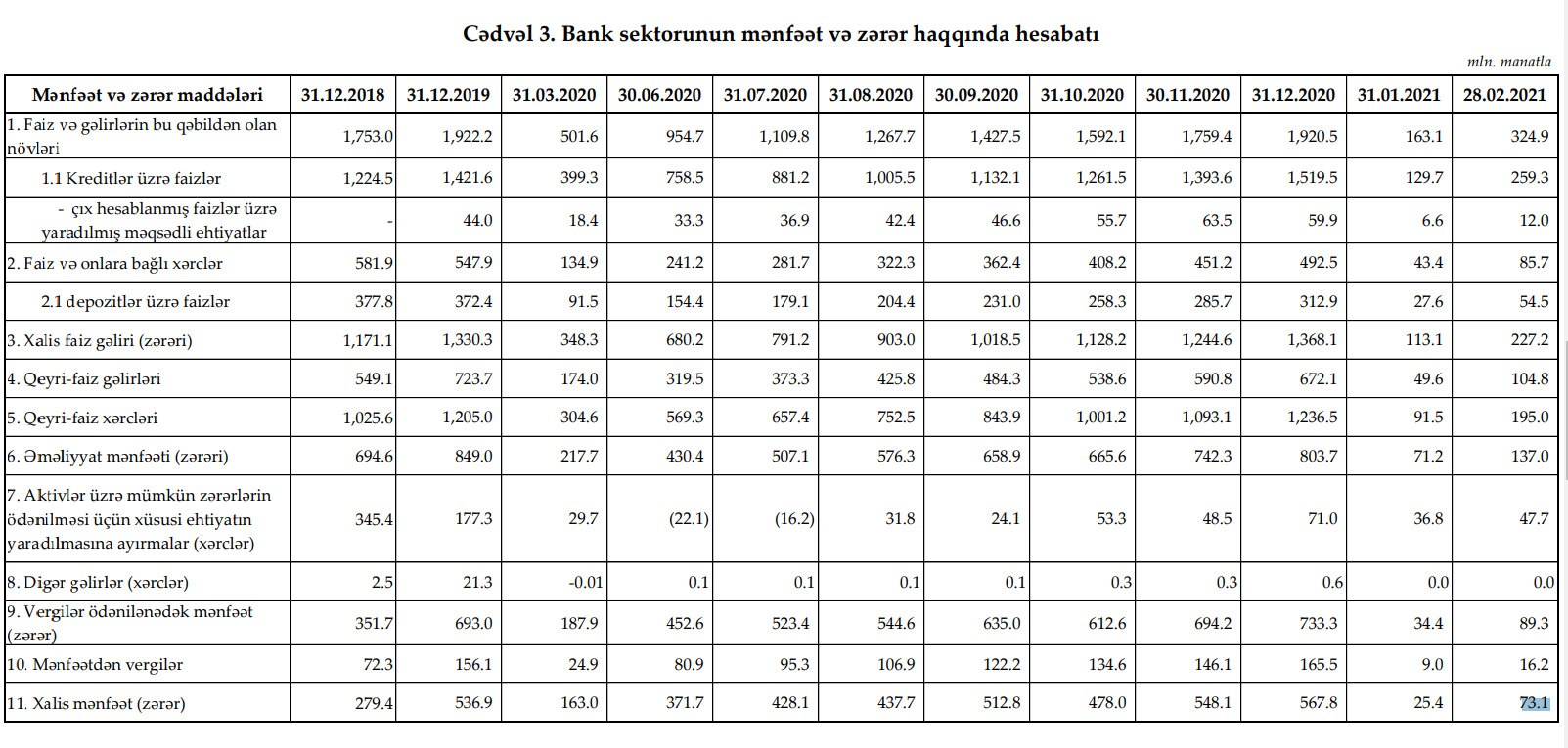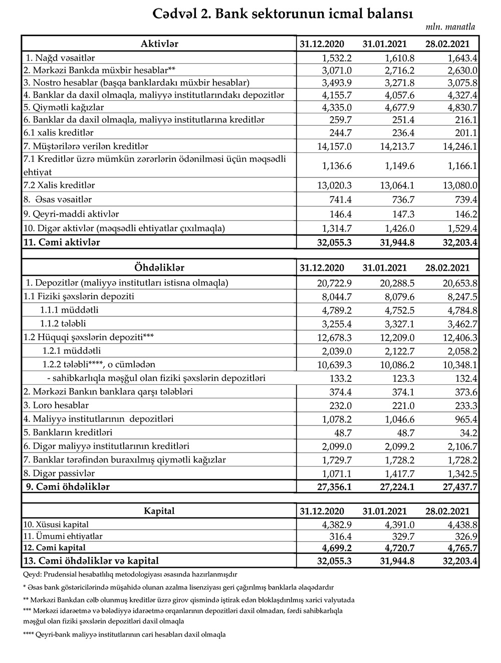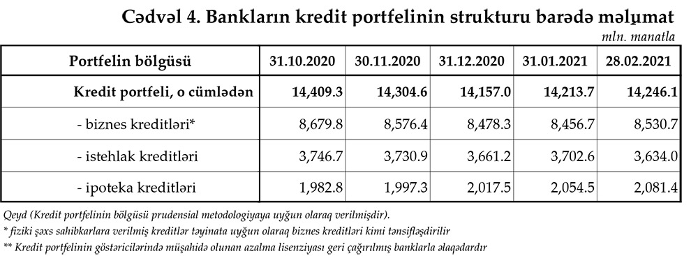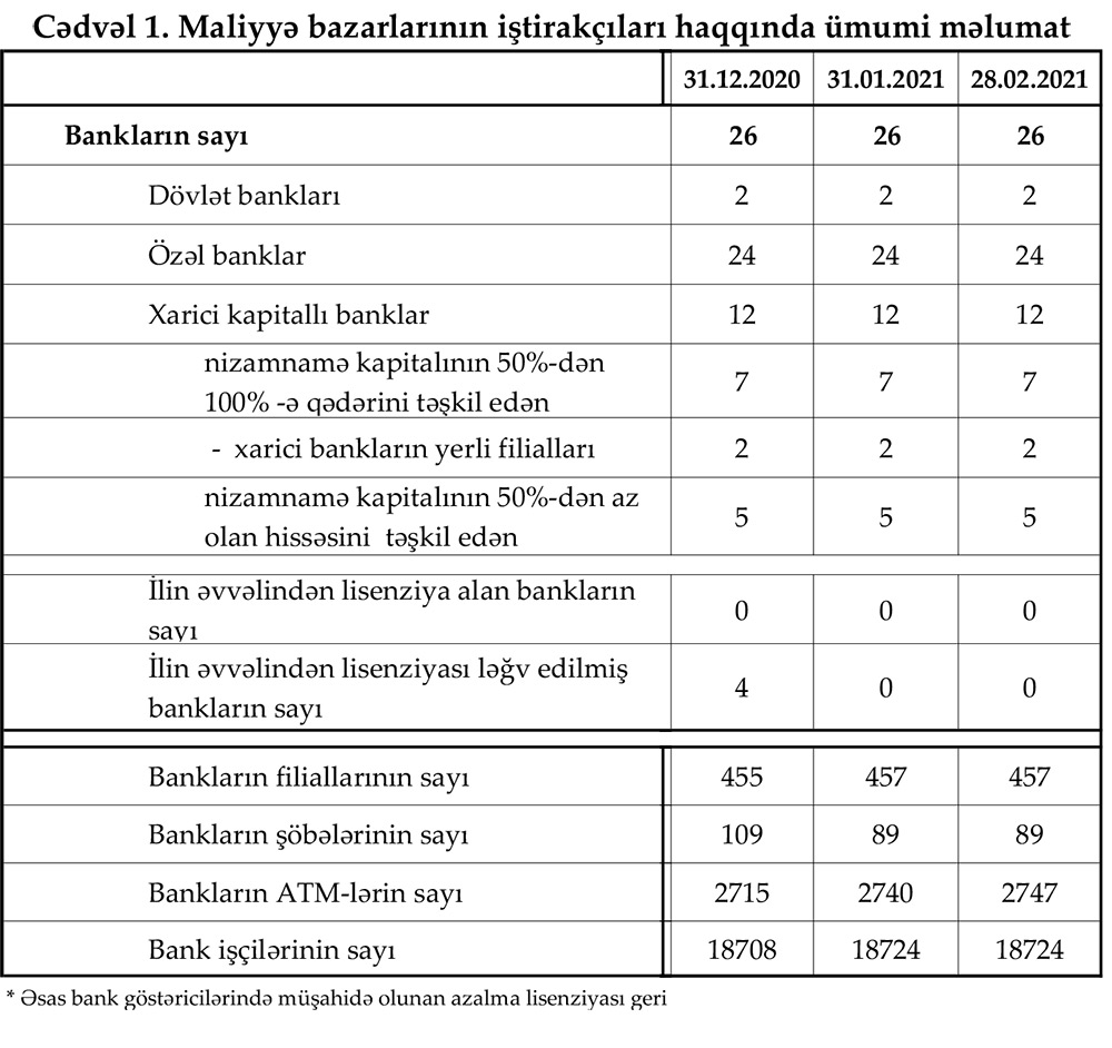 28 fevral 2021-ci il tarixinə olan bank sektorunun əsas göstəriciləri açıqlanıb.
