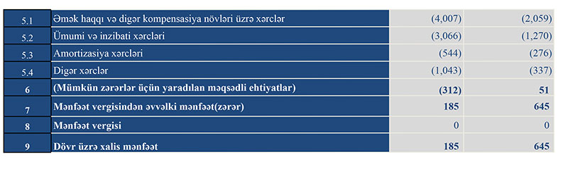 Gəlirlər ilə bərabər cəmi xərclərin artmasının səbəbləri faiz xərclərinin, əmək haqqı xərclərinin, ümumi və inzibati xərclərin artmasıdır.