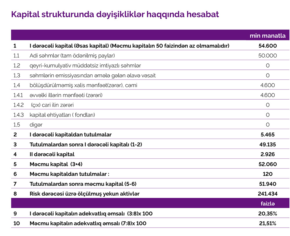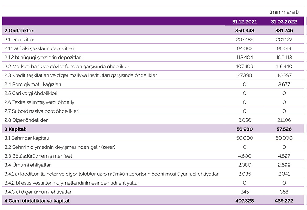 31 Mart 2022-ci il tarixində "Azər-Türk Bank" 51 milyon 940 min manat məcmu kapitala malik olub.
