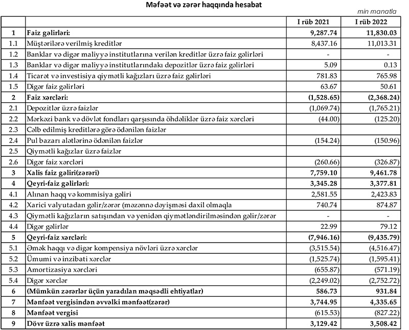 Ölkənin maliyyə və bank sektorunda aparıcı yerlərdən birini tutan “Expressbank” ASC 2022-ci ilin birinci rübünü 3.5 milyon manat mənfəətlə başa vurub.
