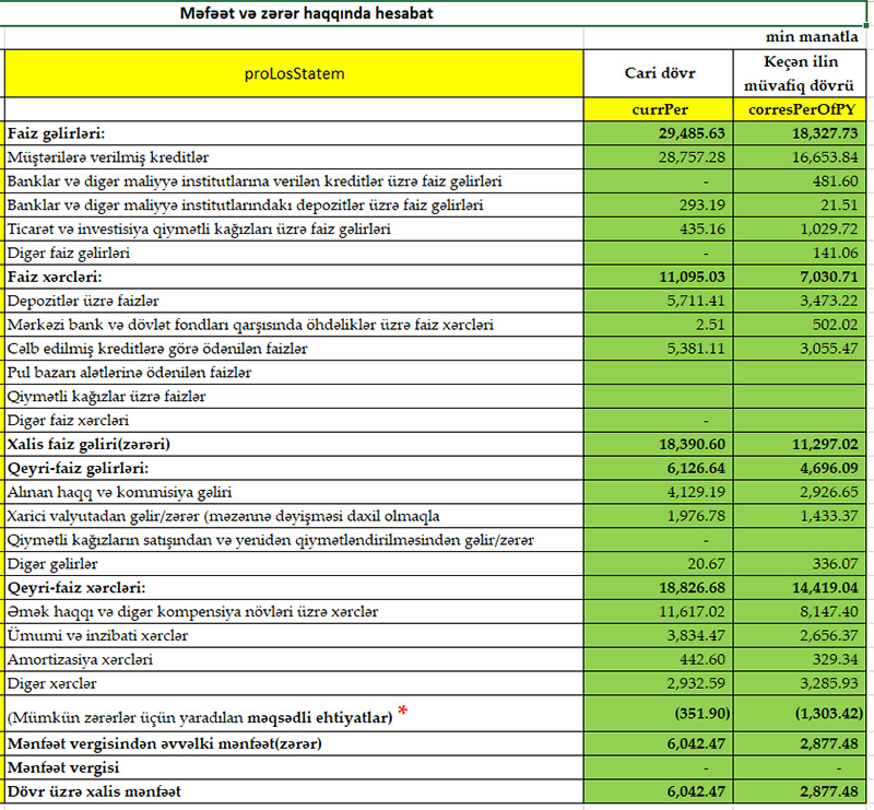 Müqayisə üçün qeyd edək ki, 2021-ci ilin ilk rübündə “Bank Respublika”nın cəmi əməliyyat gəlirləri 23 milyon 23 min manat, cəmi əməliyyat xərcləri 21 milyon 450 min manat, əməliyyat mənfəəti 1 milyon 573 min manat təşkil etmişdi. Mümkün zərərlər üçün yaradılan məqsədli ehtiyatlarda azad olmuş 1 milyon 303 min manatın hesabına mənfəət 2 milyon 877 min manata yüksəlmişdi.