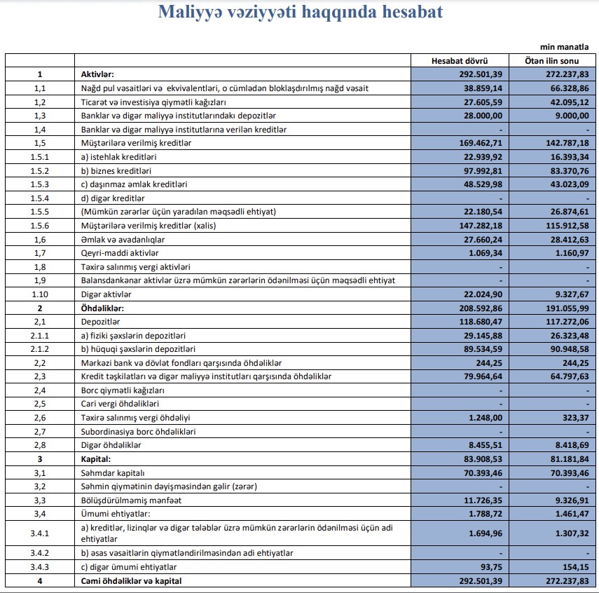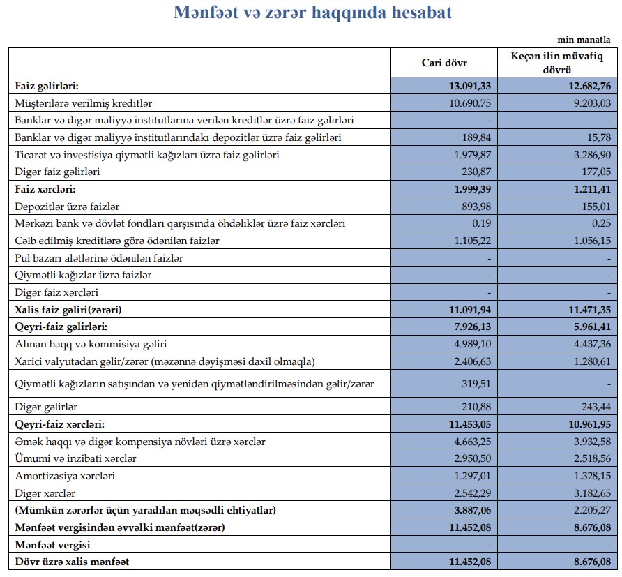 Xatırladaq ki, 2021-ci ilin 9 ayında "AFB Bankı"ın cəmi əməliyyat gəlirləri 18 milyon 644 min manat, cəmi əməliyyat xərcləri 12 milyon 173 min manat, gəlirlər xərcləri üstələdiyindən əməliyyat mənfəəti 6 milyon 471 min manat təşkil etmişdi. Eyni zamanda, mümkün zərərlər üçün yaradılan məqsədli ehtiyatlardan qayıtmış 2 milyon 205 min manat mənfəətə əlavə edilmişdi.