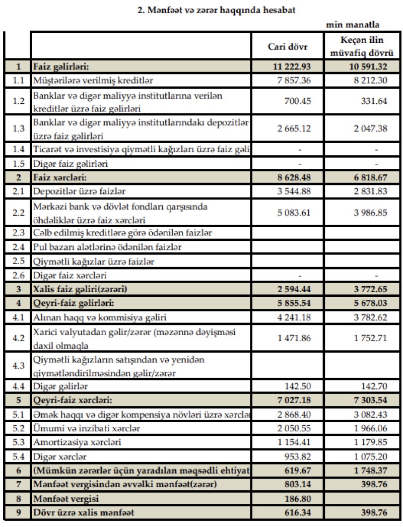 "GünayBank"ın istehlak və biznes kreditləri portfeli kiçilib, faiz xərcləri artıb və nəticədə əməliyyat mənfəəti azalıb.