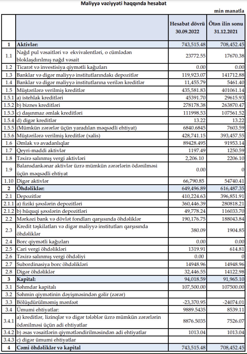 "Muğanbank"ın depozit portfeli 2022-ci ilin 9 ayında 2021-ci ilin sonu ilə müqayisədə 13 milyon 373 min manat və ya 3,4% artaraq 410 milyon 224 min manata çatıb.