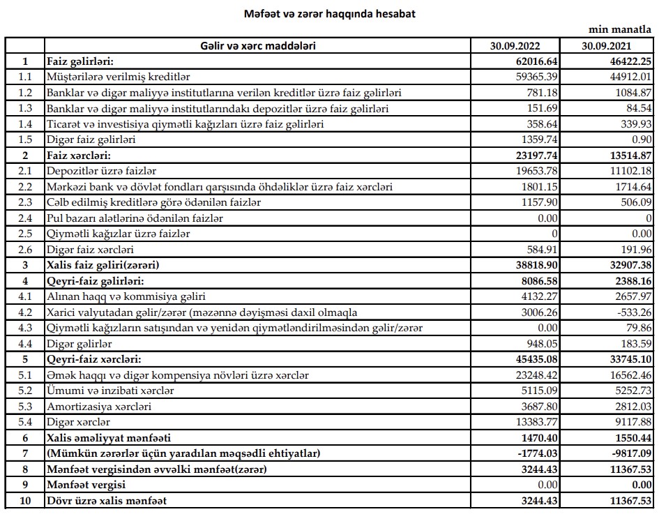2022-ci ilin yanvar-sentyabr dövründə "Yelo Bank"ın əməliyyat gəlirləri artsa da, əməliyyat xərclərinin artması onu tamamilə silib.