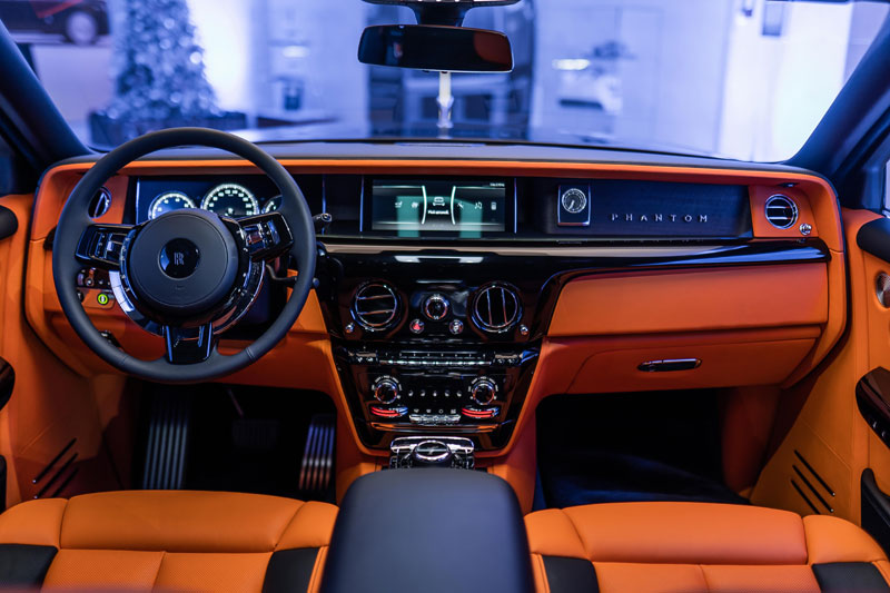 Phantom-un dəbdəbəli interyeri çox dəyişməyib. Sükan çarxı bir qədər qalınlaşaraq, sahibi ilə avtomobili arasında emosional əlaqəni gücləndirib.