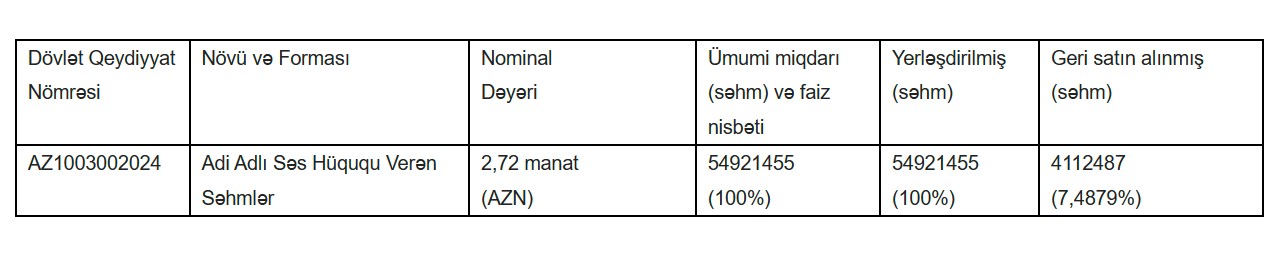 Qeyd edilib ki, “Unibank” KB ASC 2023-cü il dekabrın 7-dək onun sərəncamında olan geri alınmış səhmlər üzrə Azərbaycan Respublikası Mülki Məcəlləsinin 105-1.5.-ci maddəsinin müddəalarında nəzərdə tutulmuş qərarlar qəbul etmək hüququna malikdir. Geri alınmış səhmlər səsvermə zamanı nəzərə alınmır və onlar üzrə dividendlər hesablanmır. Bu səhmlər geri satın alındığı tarixdən bir il müddətində ya təkrarən yerləşdirilməli, ya da ümumi yığıncağın qərarı ilə ləğv edilməlidir.