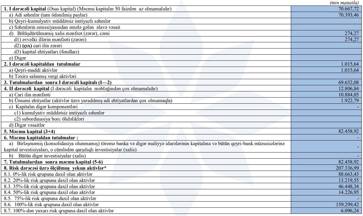 31 Dekabr 2022-ci il tarixində "AFB Bank" 82 milyon 458 min manat məcmu kapitala malik olub. Bank 2021-ci ilin sonunda 80 milyon 21 min manat məcmu kapitala malik idi.
