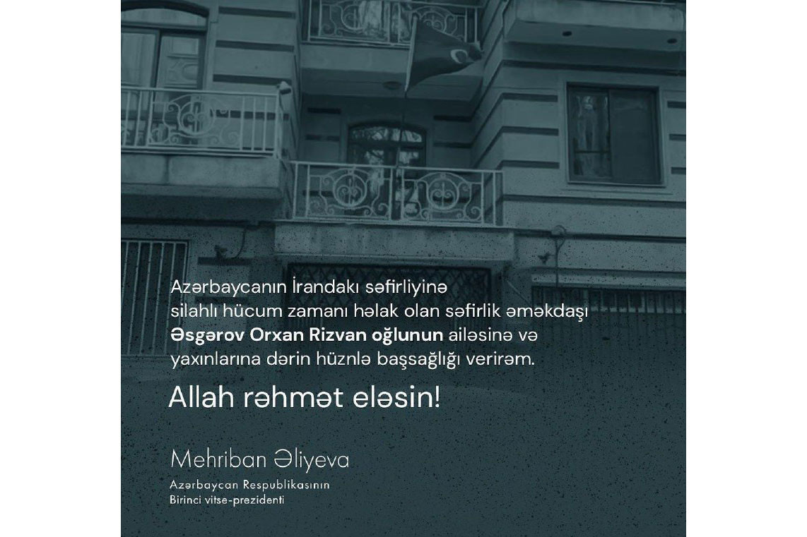 “Bu gün Tehrandakı səfirliyimizə qarşı törədilmiş terror aktı zamanı həlak olmuş həmvətənimiz, baş leytenant Əsgərov Orxan Rizvan oğlunun doğmalarına və yaxınlarına dərin hüznlə başsağlığı verirəm. Allah rəhmət eləsin! Yaralıların tezliklə sağalması üçün dua edirəm. Uca Tanrı Azərbaycan xalqına yar olsun!”.