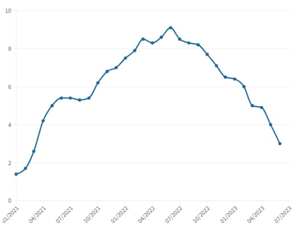 Məlumatlar bir il əvvəl inflyasiyanın pik həddinə çatmasından bəri qiymət təzyiqlərinin azaldılmasında irəliləyiş əldə edildiyini, bir ildən çox müddətdə artırılan faizlərin tələbin azalmasına kömək etdiyini vurğulayır. Buna baxmayaraq, inflyasiya səviyyəsi FED-in hədəfindən (2%) xeyli yüksək olaraq qalır və 25-26 iyul iclasında faiz dərəcələrini artırmağa davam edəcəyi gözlənilir.