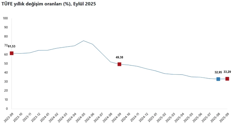 Türkiyə Statistika Qurumunun (TÜİK) açıqladığı sentyabr ayı məlumatlarına görə, İstehlakçı Qiymətləri İndeksi (inflyasiya göstəricisi) belə olub: