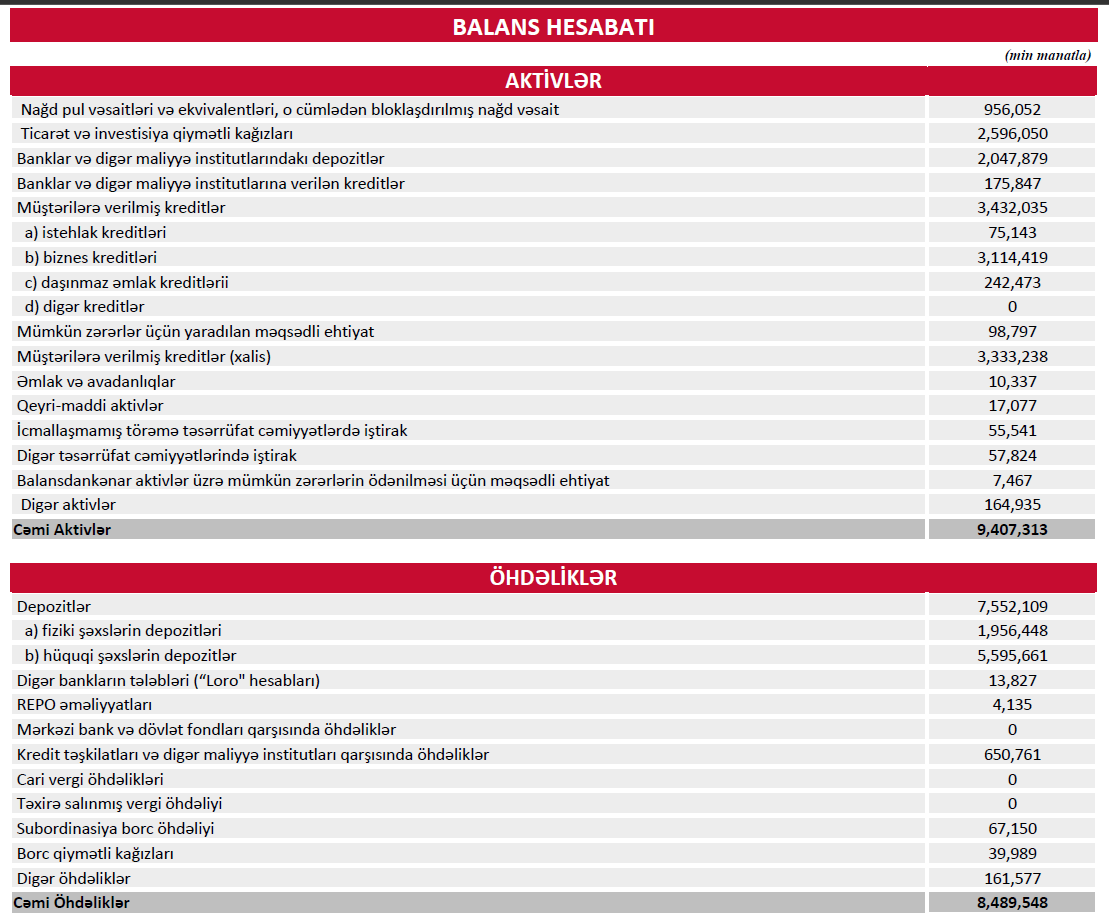 Aktivlərin böyüməsi Bankın bazar payını qoruduğunu və əsasən kredit əməliyyatları hesabına genişləndiyini göstərir.