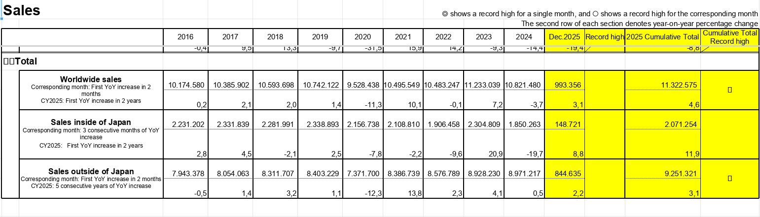 Toyota Motor şirkəti cümə axşamı bildirib ki, 2025-ci ildə qlobal miqyasda rekord sayda (11,3 milyon ədəd) avtomobil sataraq ardıcıl altıncı ildir ki, dünyanın ən çox satılan avtomobil istehsalçısı tacını qoruyub saxlayıb. Toyota qrupunun cəmi satışları satışları, ana şirkətin Toyota və Lexus markalı avtomobilləri, eləcə də kiçik avtomobil bölməsi Daihatsu və yük maşını istehsalçısı Hino Motors tərəfindən satılan avtomobillər də daxil olmaqla, bir il əvvələ nisbətən 4,6% artıb. İkinci sıradakı rəqibi almaniyanın Volkswagen Group şirkəti bu ay bildirib ki, ötən il avtomobil satışlar 0,5% azalaraq 9 milyondan bir qədər aşağı düşüb. Ötən il Volkswagen Group, ölkə daxilində xərcləri azaltmağa və Çindəki gərgin rəqabətlə mübarizə aparmağa çalışıb.
