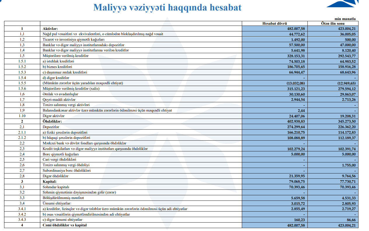 Depozitlərin artması bankın maliyyə resurslarının genişləndiyini və müştəri bazasının böyüdüyünü göstərir. Bu, kredit portfelinin maliyyələşdirilməsi üçün mühüm mənbədir.