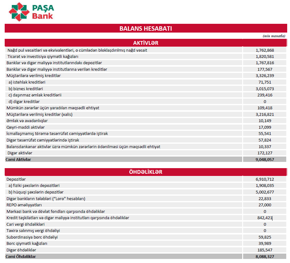 Ümumilikdə, 2026-cı ilin ilk rübünün nəticələri göstərir ki, PAŞA Bank əməliyyat xərclərinin azaldılması və risklərin idarə olunması hesabına mənfəətini artırmağa nail olub. Bununla yanaşı, depozit və kredit portfelində müşahidə olunan azalma bankın balans strukturunda müəyyən optimallaşdırma prosesinin getdiyini göstərir. Eyni zamanda kapitalın artması bankın maliyyə dayanıqlığının qorunduğunu və kapitallaşma səviyyəsinin gücləndiyini göstərir.