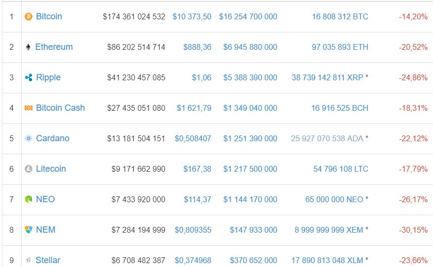 "Coinmarketcap" göstəricilərinə görə dünyanın ən böyük üç kripto valyutasının ümumi bazar dəyərindən üç gündə 150 milyard dollar silinib.