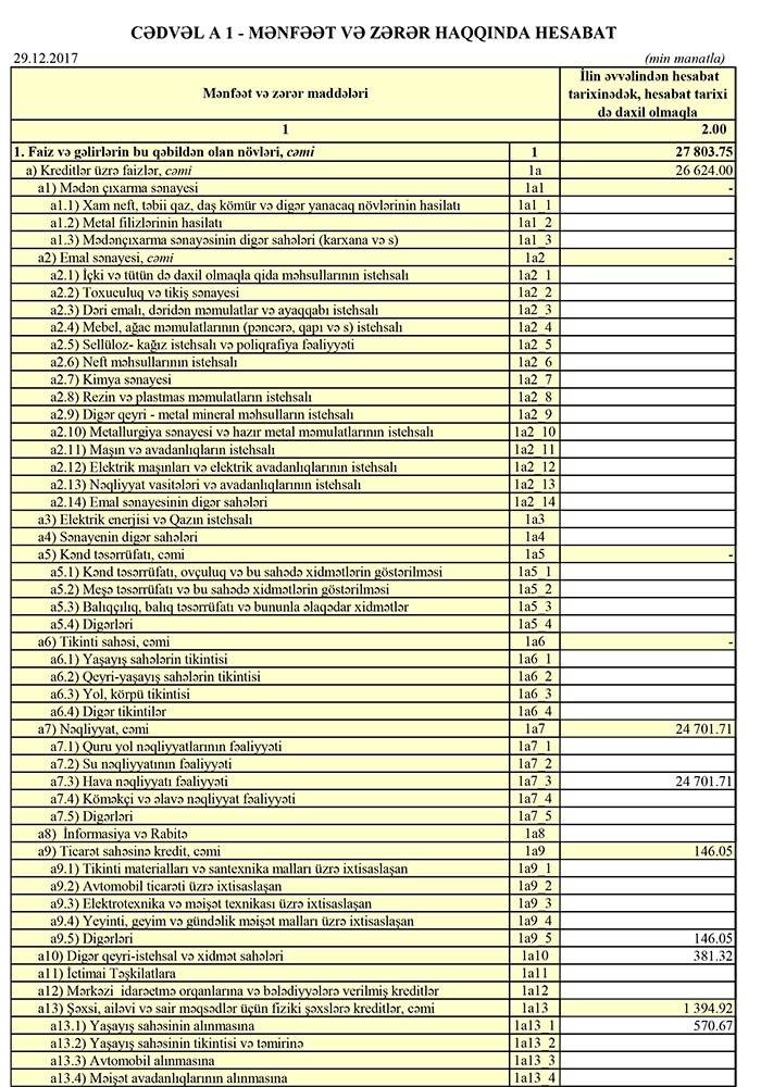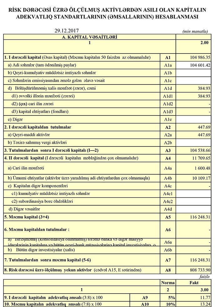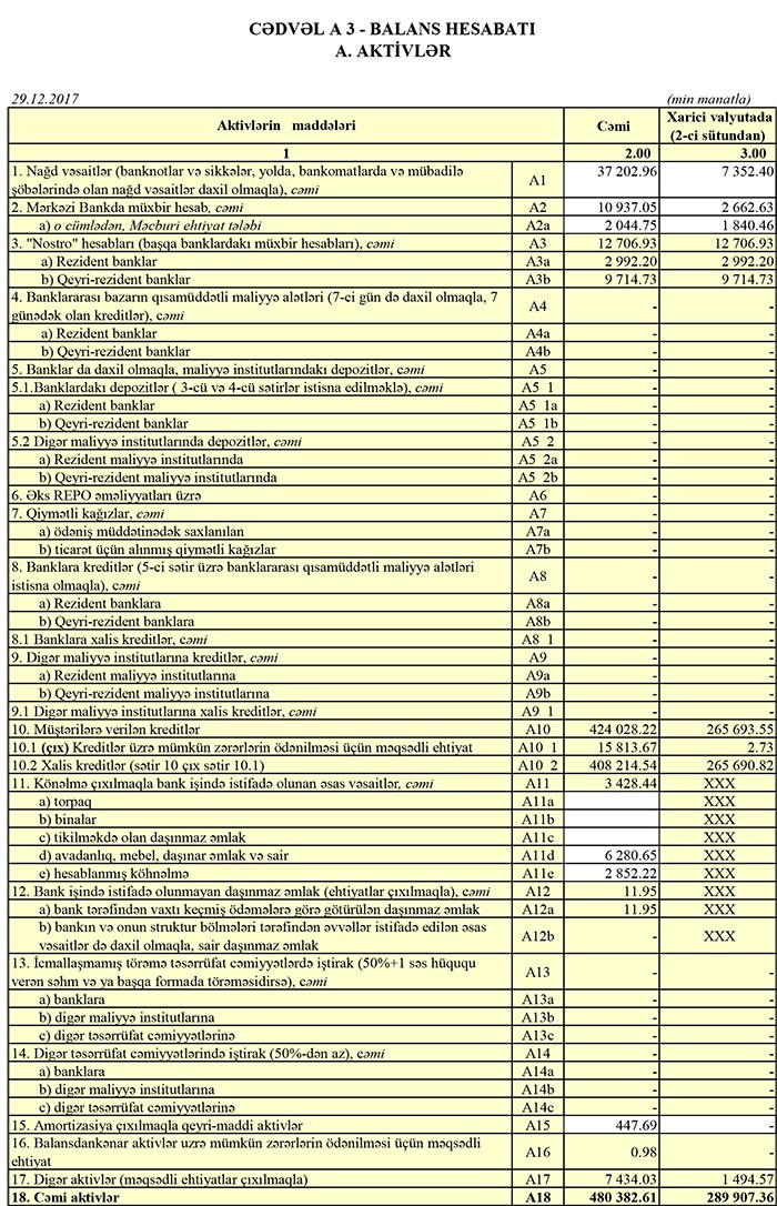 Bankın kredit portfeli 2016-cı ilin sonundakı 388 milyon 332 min manatdan 424 milyon 28 min manata qalxıb. Xalis kreditlər isə 372 milyon 370 min manatdan 408 milyon 214 min manata yüksəlib.