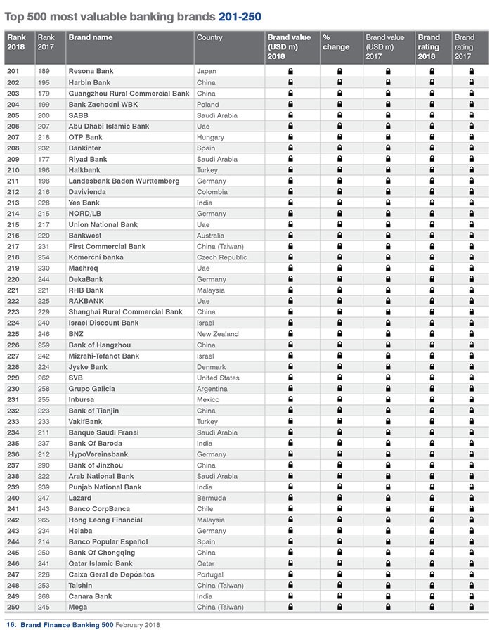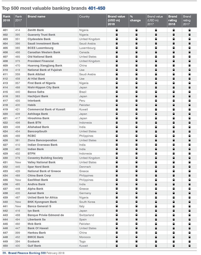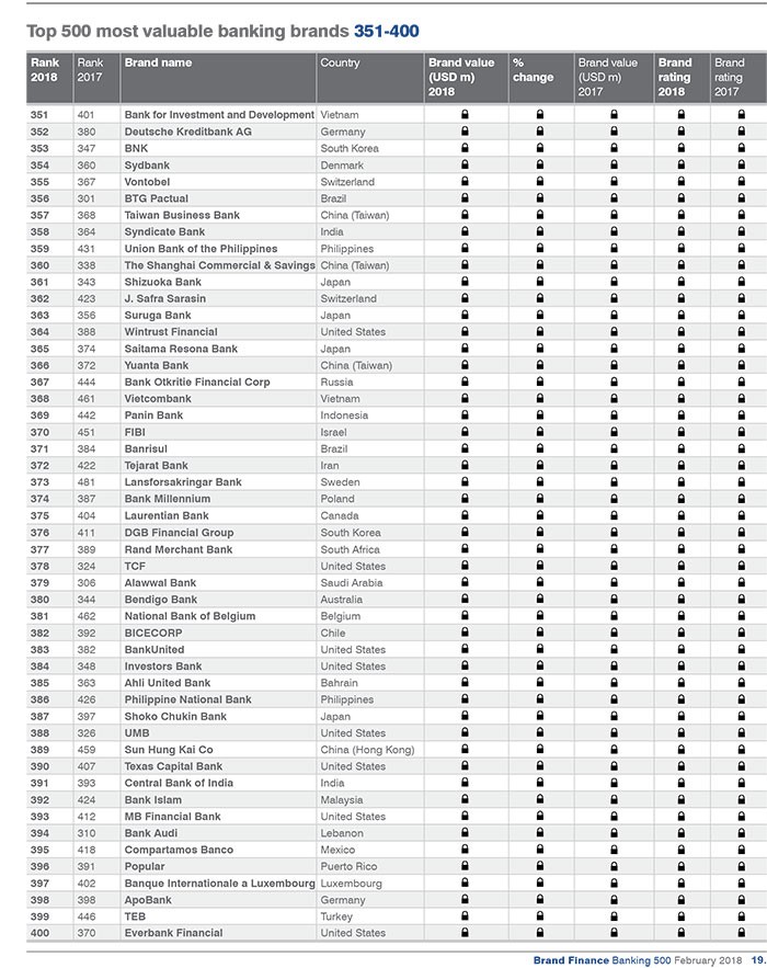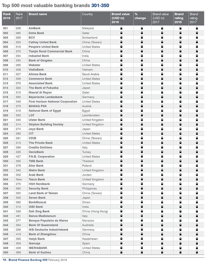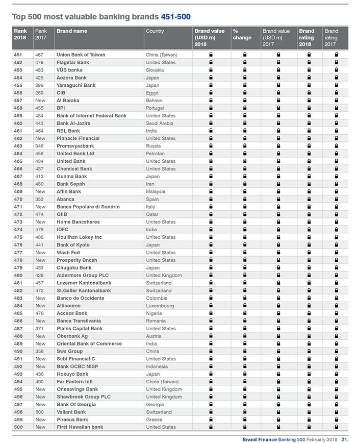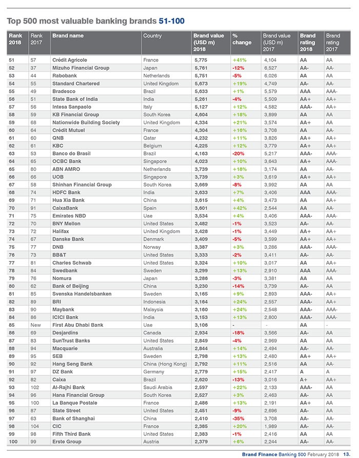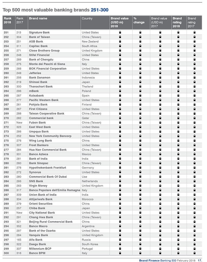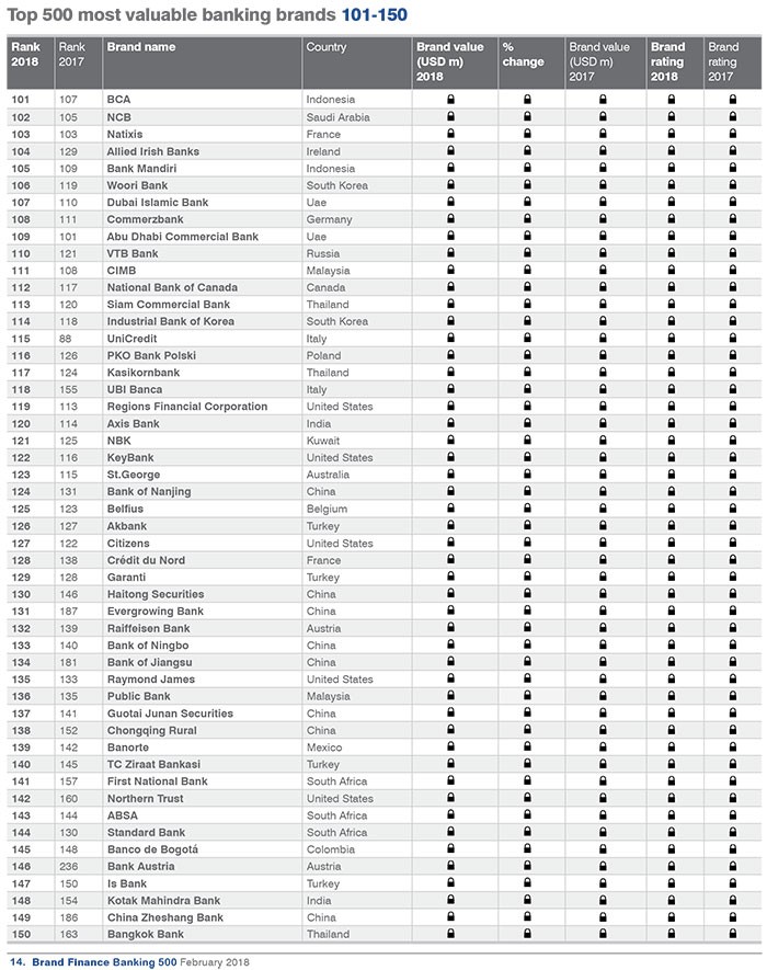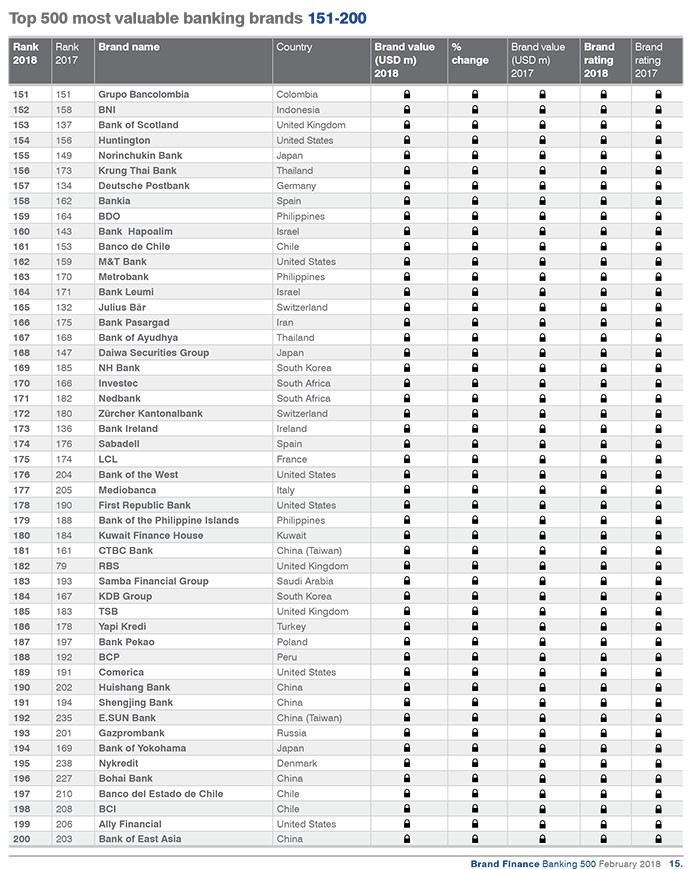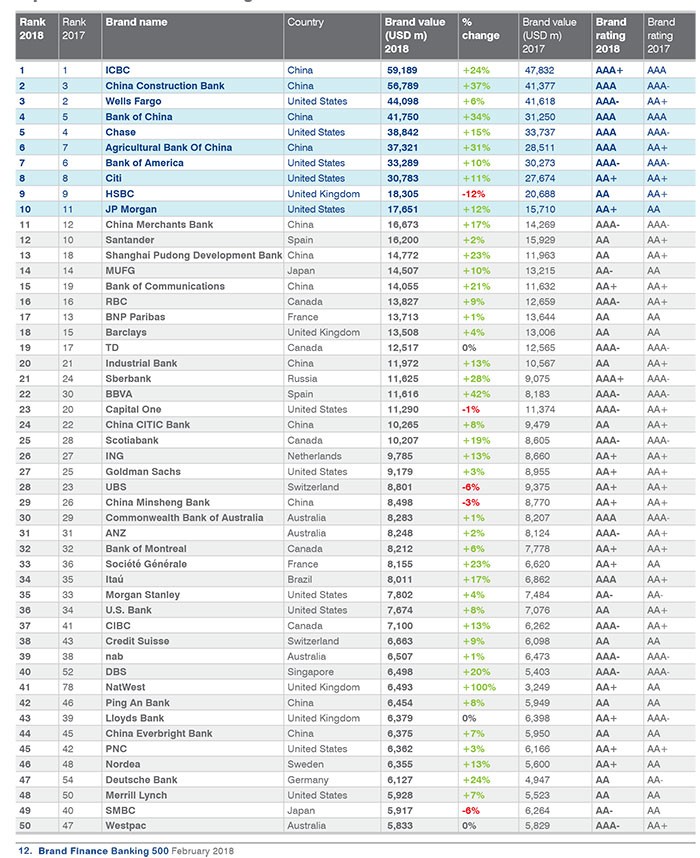 Dünyanın ən dəyərli bank brendləri ilə aşağıdakı siyahıdan tanış ola bilərsiniz.