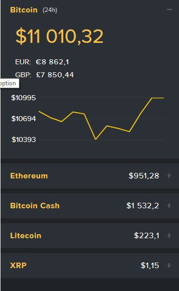 Bitcoin 18 gündən bəri ilk dəfə 11 min dolların üzərinə qalxıb.