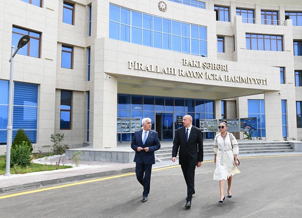 Sonra dövlət başçısı və birinci xanım Pirallahı Rayon İcra Hakimiyyəti üçün inşa edilən binada yaradılan şəraitlə tanış olublar.