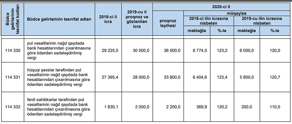 Bu il, pul vəsaitlərinin nağd qaydada bank hesablarından çıxarılmasına görə ödənilən sadələşdirilmiş