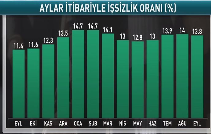 Türkiyədə işsizlik nisbəti Sentyabrda 2,4 bənd artım ilə 13,8% səviyyəsində reallaşıb.