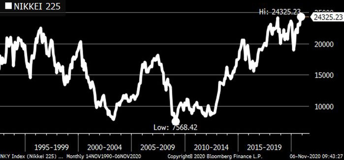 Yaponiyanın Nikkei 225 indeksində 1991-ci ildən bu yana görülən ən yüksək bağlanış səviyyəsi qeydə alınıb.Sərmayəçilər, ABŞ-dan gələcək seçki nəticələrini gözləyərkən, Yaponiyanın Nikkei indeksi 1991-ci ildən bu yana ən yüksək səviyyəsində bağlanıb.
