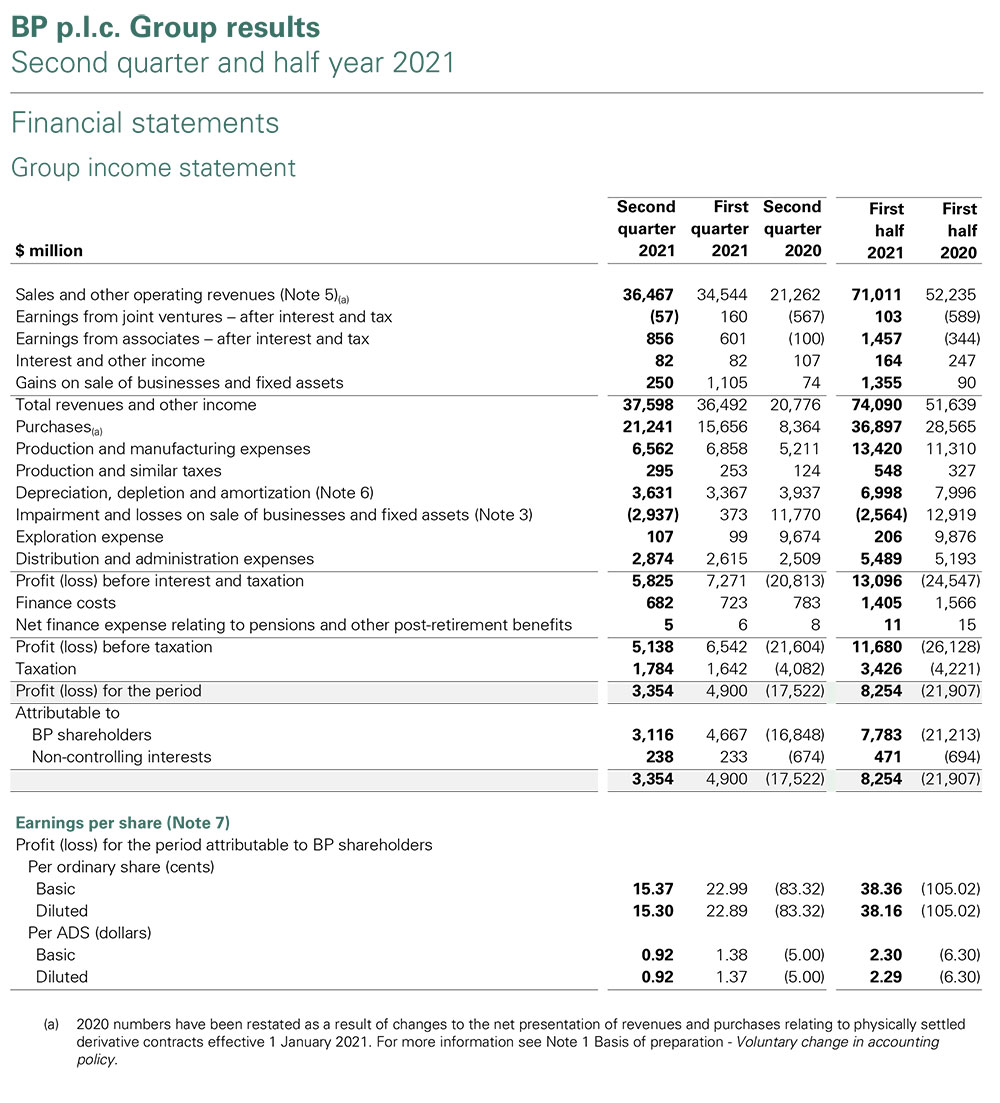 Ötən il koronavirus pandemiyasına görə neft qiymətlərinin düşməsindən ciddi ziyan çəkən BP bu il mənfəətə çıxa bilib. Belə ki, 2020-ci ilin ikinci rübündə zərər 17,52 milyard dollar, ilk 6 ayda isə 26,13 milyard dollar idisə, şirkət bu ilin ikinci rübündə 3,35 milyard dollar, ilin ilk yarısında cəmi 8,25 milyard dollar mənfəət əldə edib.