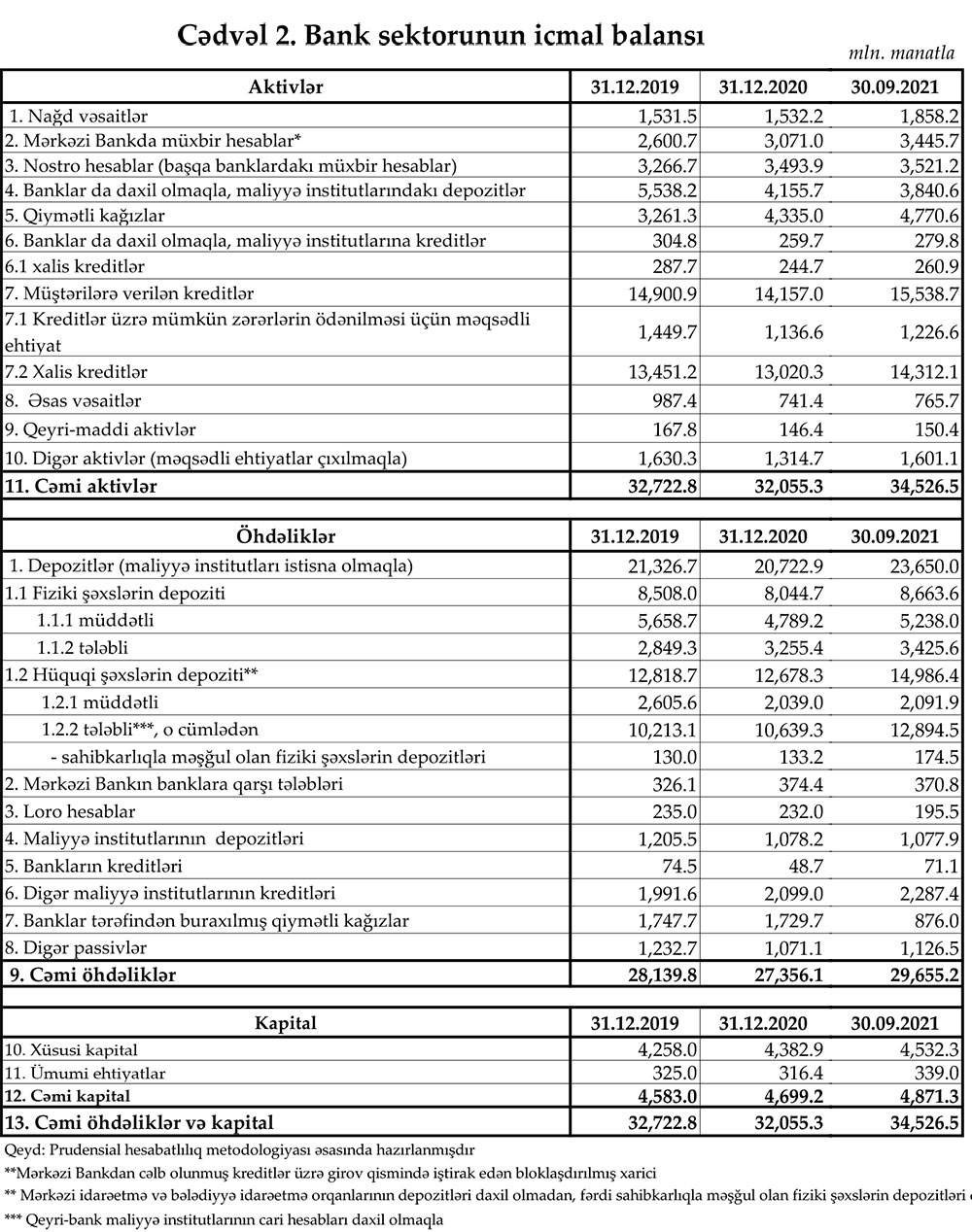 30 sentyabr 2021-ci il tarixində Azərbaycandakı banklarda fiziki şəxslərin (əhalinin) cəmi depozitləri (əmanətləri) 8 milyard 663,6 milyon manata çatıb.